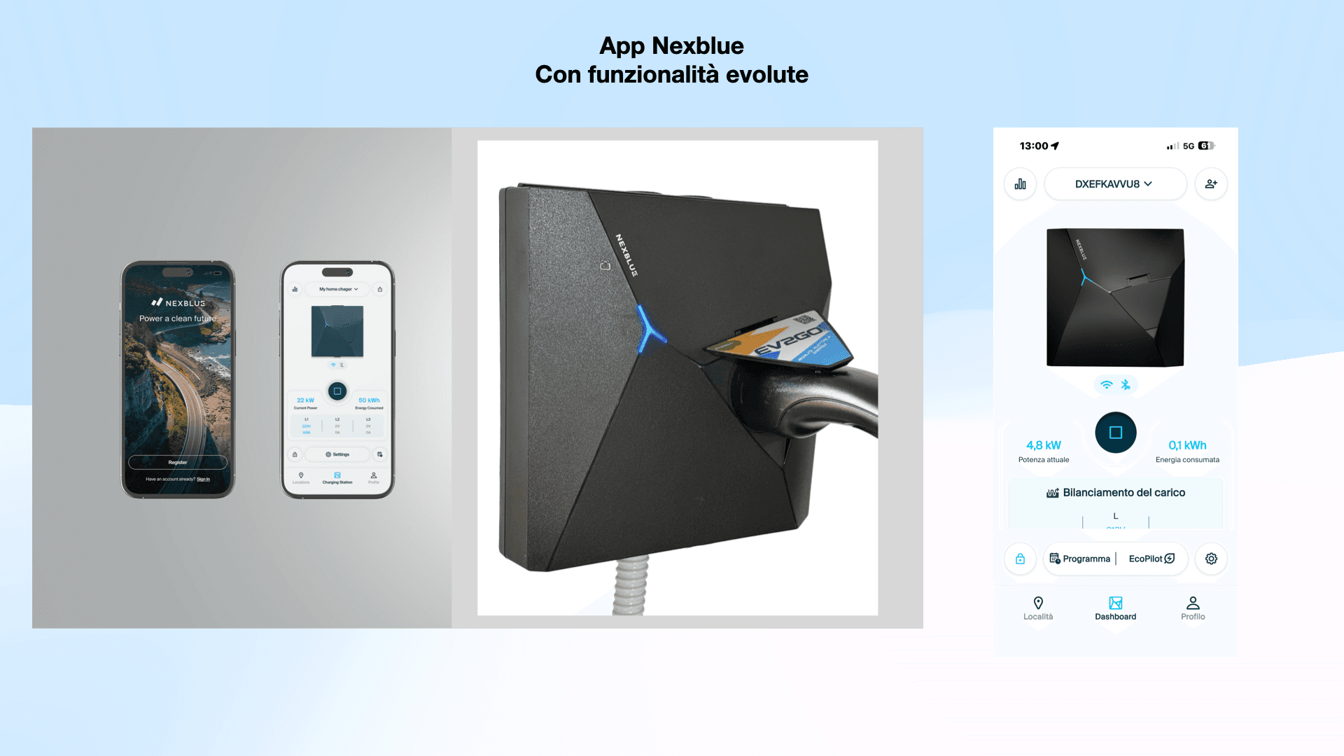 EV2GO è il distributore esclusivo Nexblue per l'Italia. Questo significa assistenza tecnica diretta, nessun intermediario, e aggiornamenti firmware garantiti nel tempo.