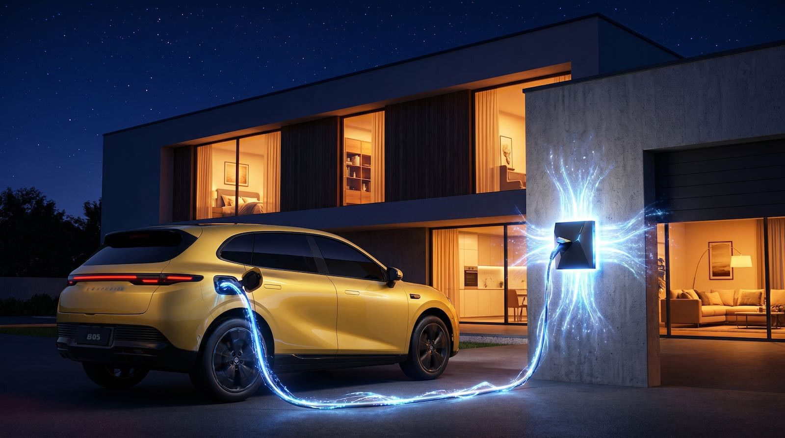 La tecnologia V2H (Vehicle-to-Home) inverte il flusso energetico: invece di essere l'auto a ricaricarsi dalla casa, è la casa a ricaricarsi dall'auto. Le batterie della B05 — 67,1 kWh nell'allestimento Design — diventano un sistema di accumulo domestico di grande capacità, ben superiore ai classici accumulatori da 5-10 kWh installati con i pannelli solari.